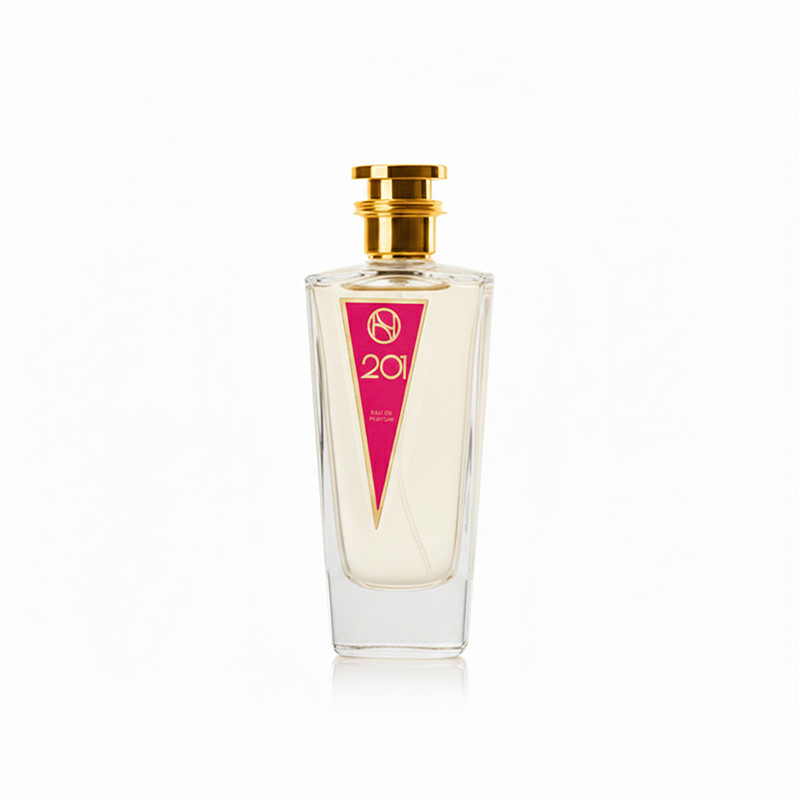 201 est une eau de parfum pour femme au sillage raffiné et lumineux. Une fragrance délicate qui incarne élégance, féminité et séduction, parfaite pour la femme moderne et confiante.